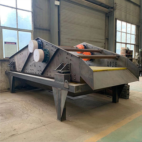 的主要功能為脫水、脫泥、脫介,采用雙電機自同步技術,通用偏心塊,可調幅振動器。篩箱、激振器、支撐系統和電動機是主要組成部分。這兩臺互不相關的振動器作逆向運行,由兩組偏心質量所產生的離心力沿振動方向的分力疊加,逆向離心抵消,使篩箱作往復式直線運動。